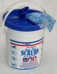 Scrubs are special cleaning wipes for all-purpose industrial/crafstman needs. They clean hands, mechanical parts, and tools and equipment quickly and effectively. These professional-use wipes are pre-saturated with a fresh orange scent detergent and there is no need to rinse after cleaning with them. They have a slightly abrasive surface so they are effective in cleaning all types of dirt (mud, grease, oil, ink, tars, etc.).